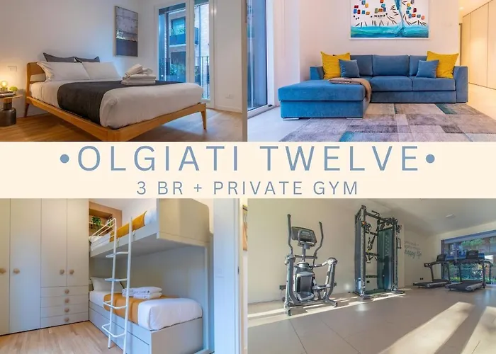 Ces appartements Olgiati Twelve - 3 Charming Bedrooms And Gym offre une vue sur le jardin et comprend un balcon, un salon et une cuisine bien équipée avec une climatisation.